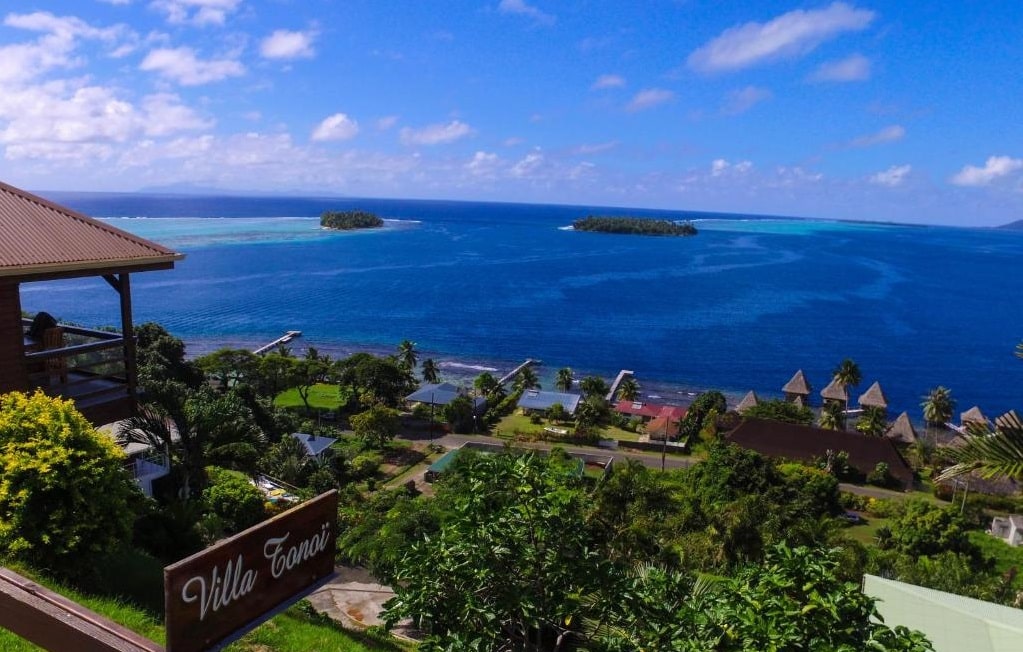 Située sur les hauteurs de Raiatea, la Villa Tonoï vous offre une vue spectaculaire sur le lagon et les montagnes environnantes. Cet établissement classé 3 Tiare, à la fois intime et confortable, est idéal pour un séjour authentique au cœur de la Polynésie.